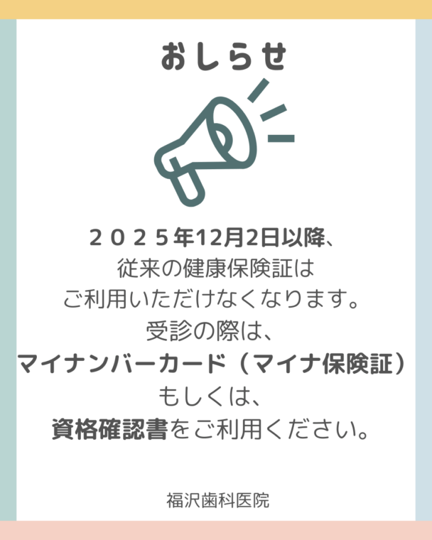 政府の方針により、2025年12月2日以降、従来の健康保険証は医療機関窓口でご利用いただけなくなります。マイナンバーカードの保険証利用について(被保険者証利用について)|厚生労働省